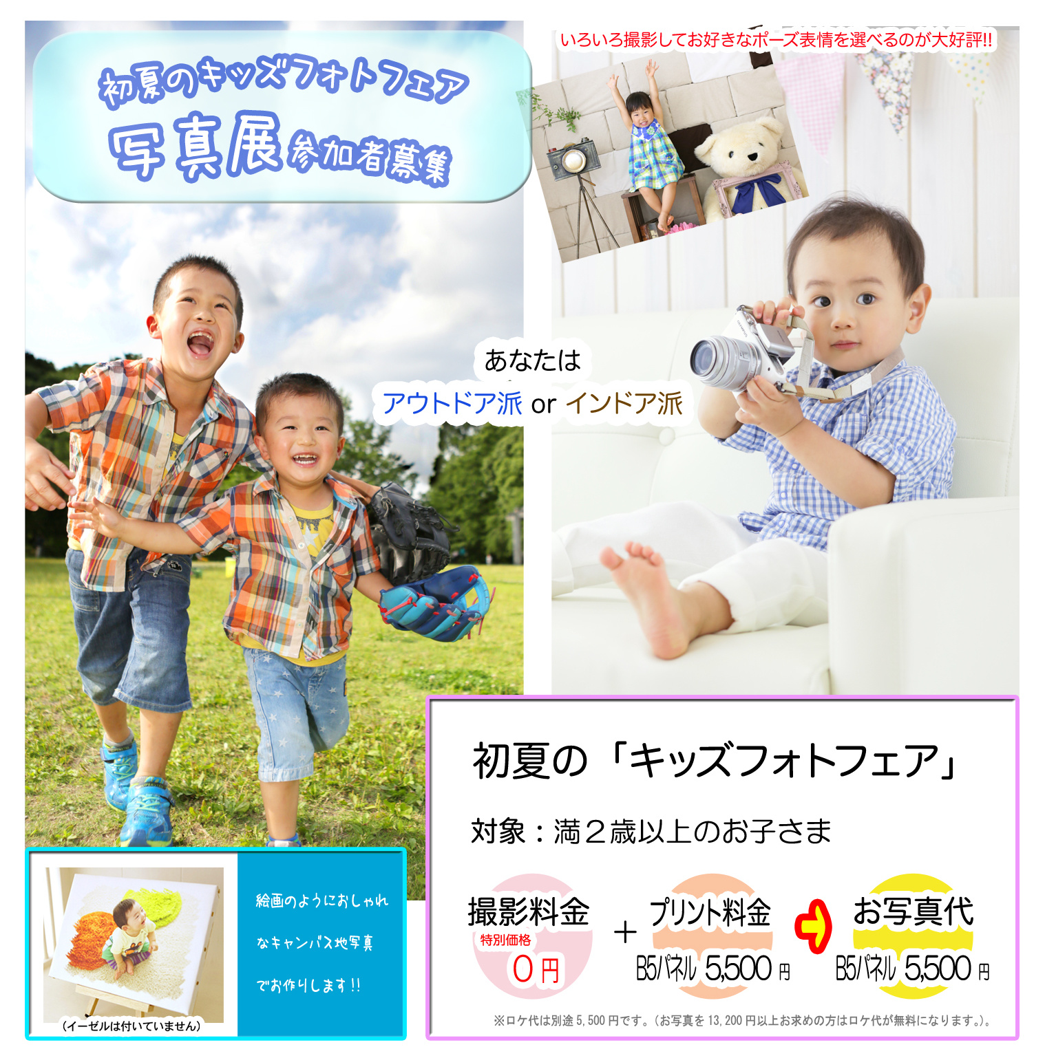 | 料金 | ○撮影料無料 ○B5アートパネル料金:3,300円(税込) から |