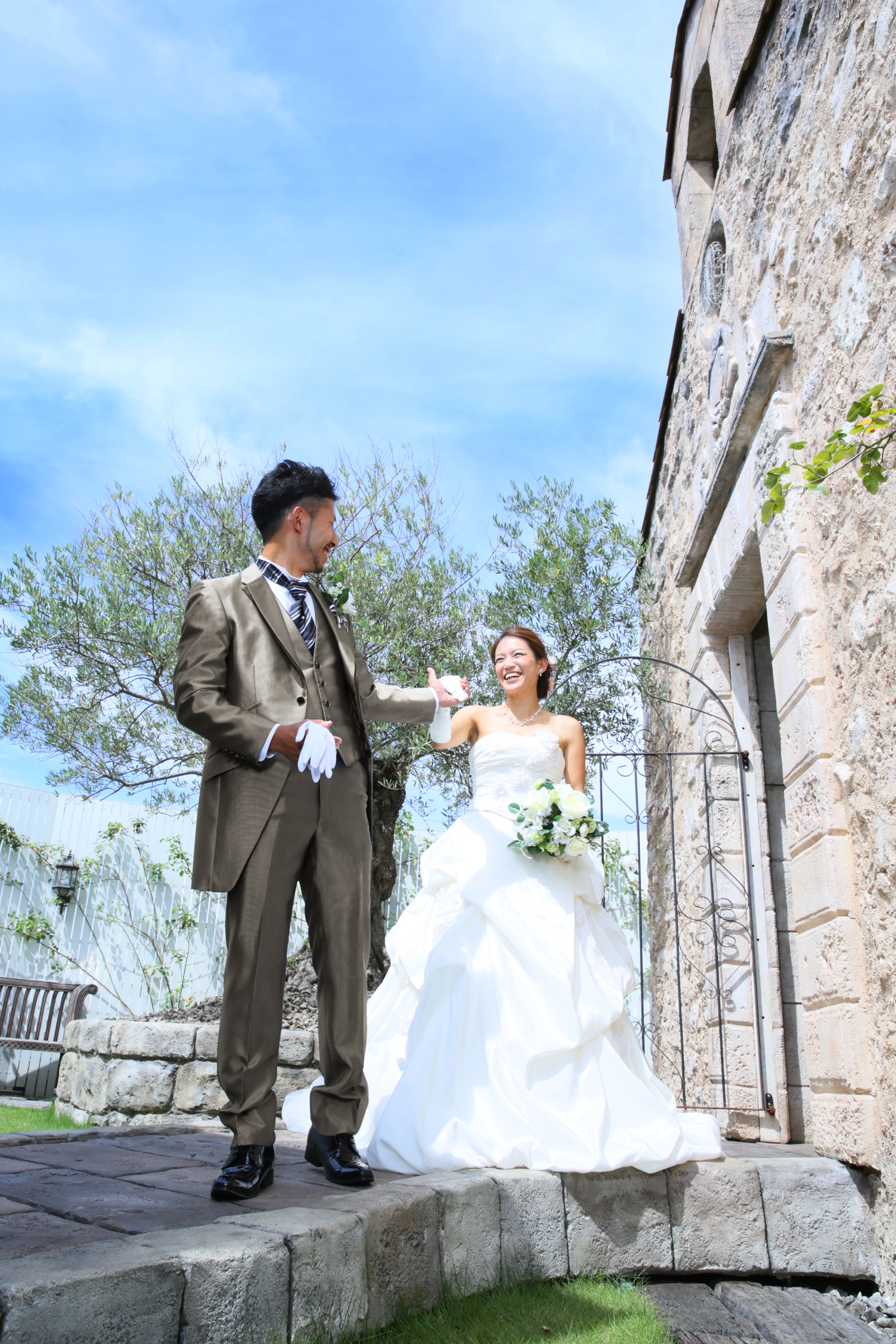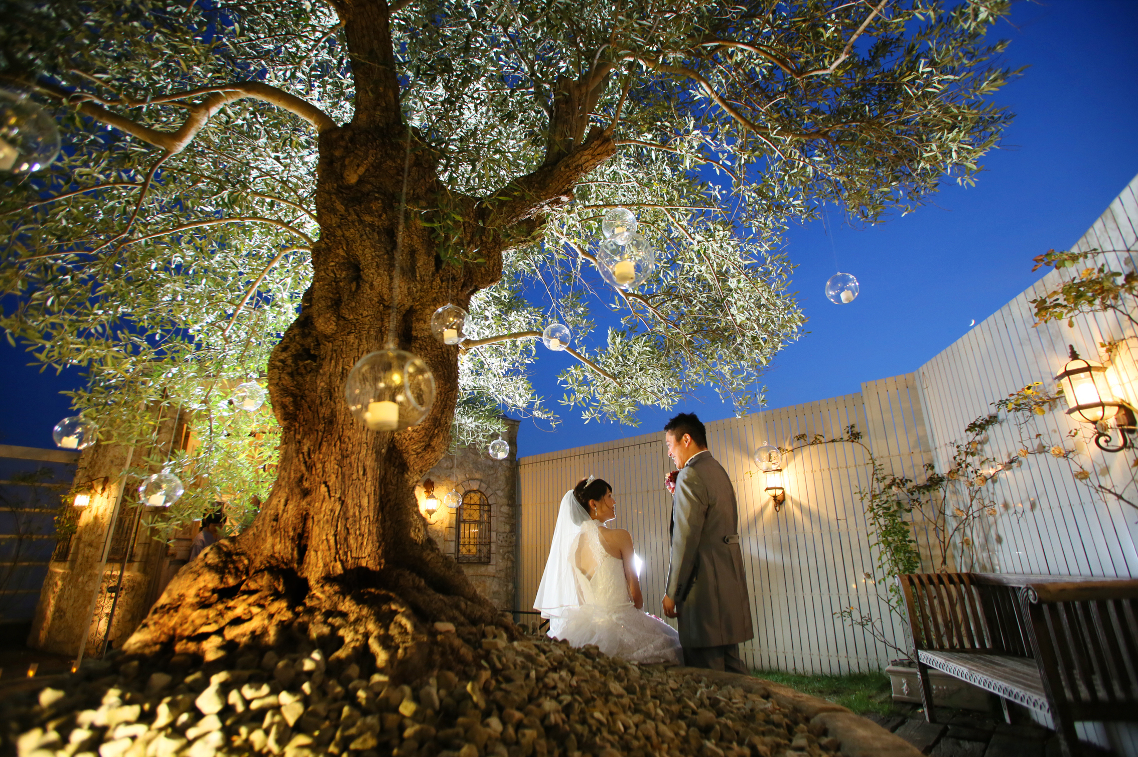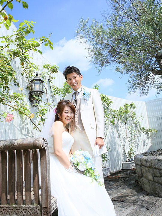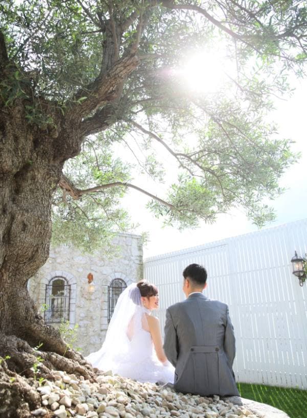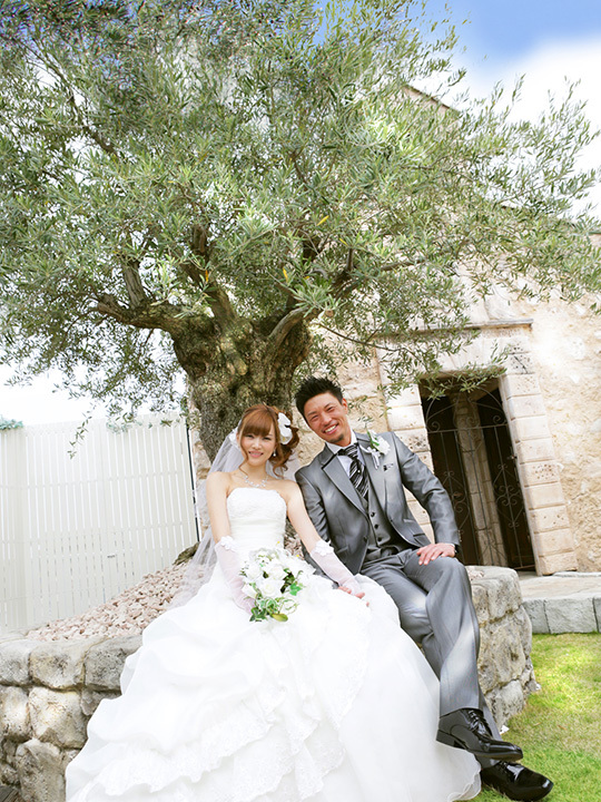 屋上ガーデンスタジオ「ラピュタ」でのフォトウェディングは、樹齢200年のオリーブの古木がお二人の幸せを見守ります。