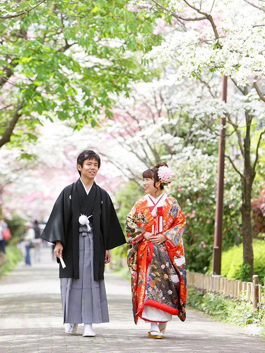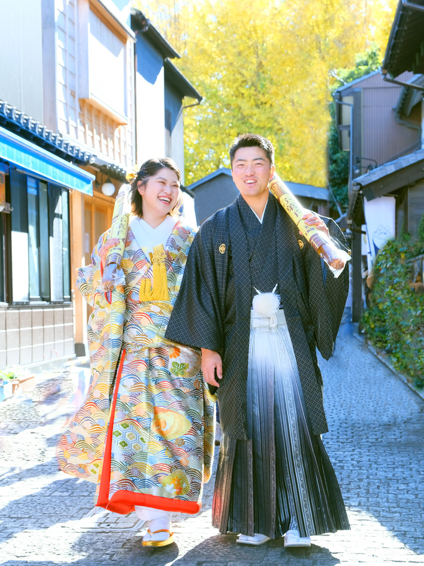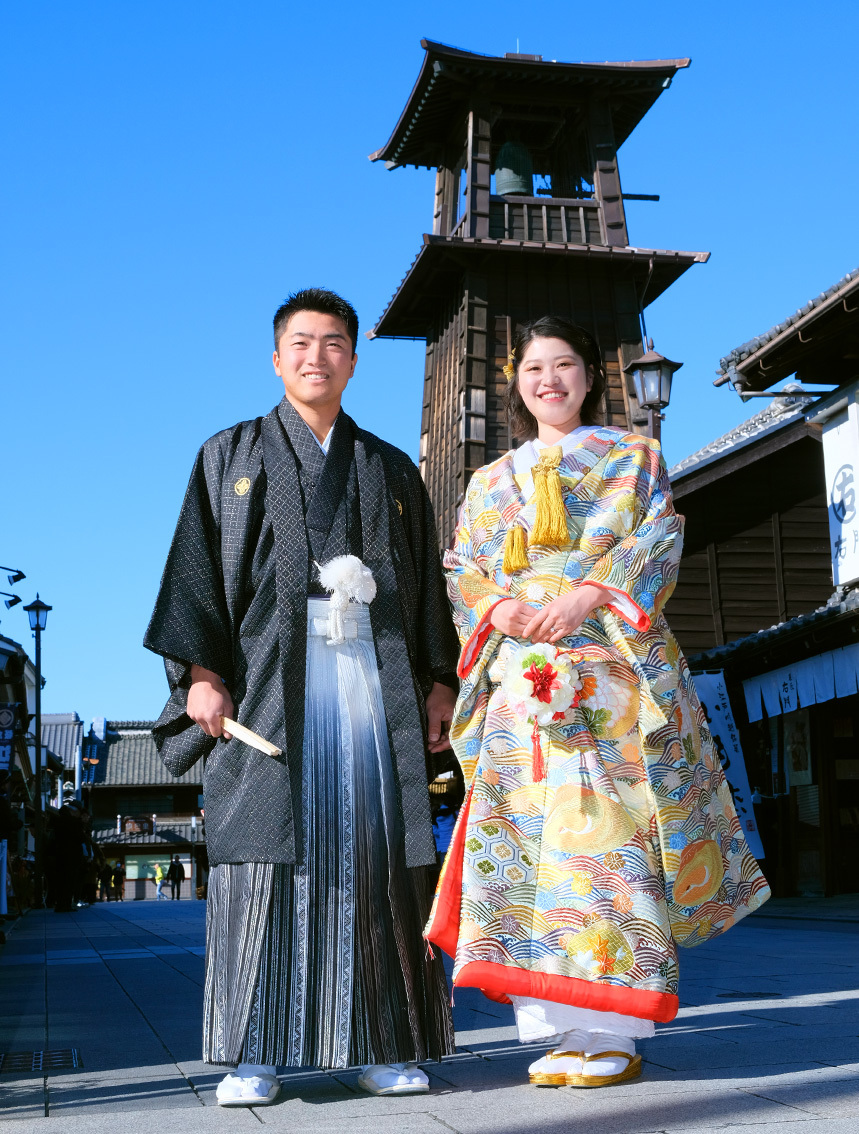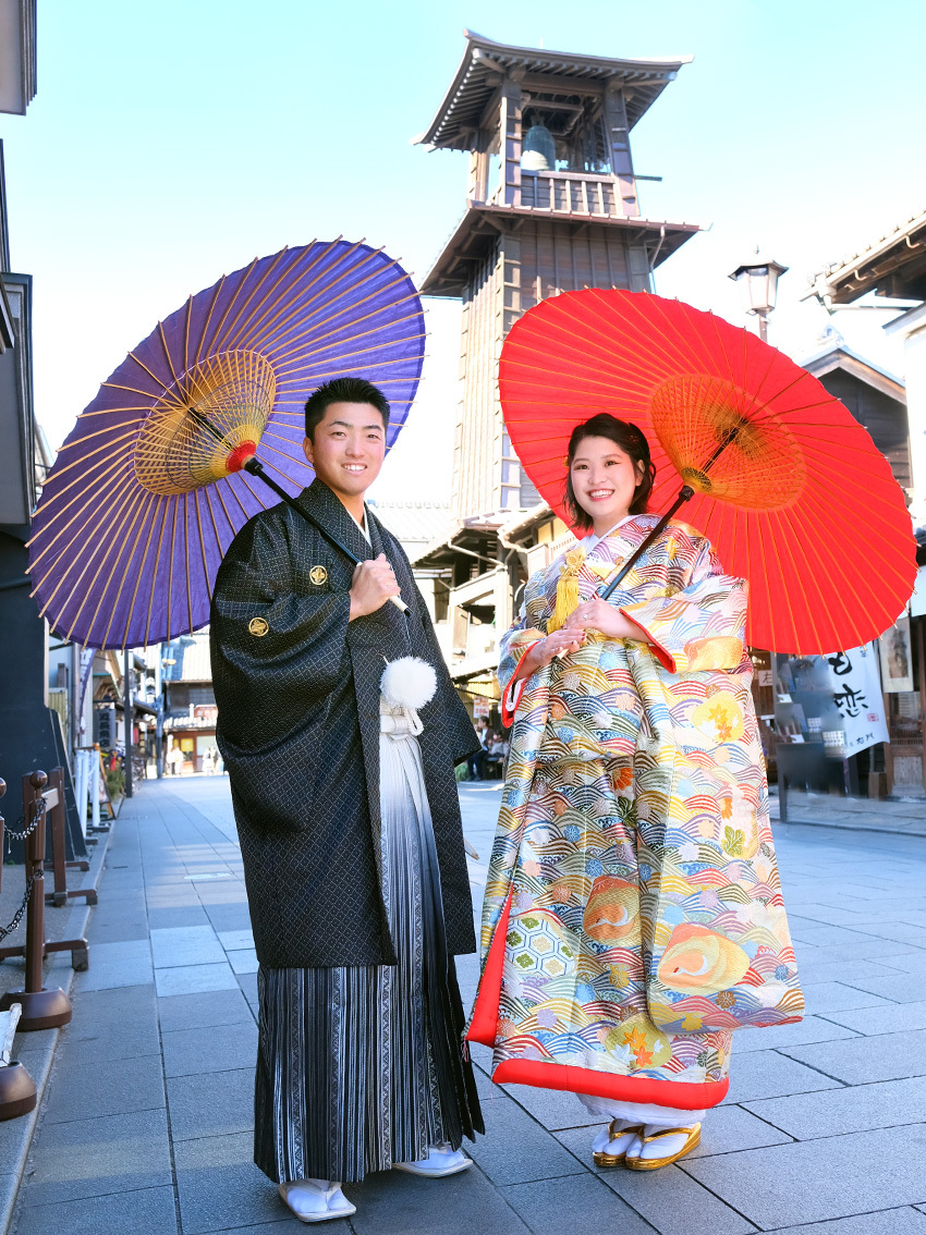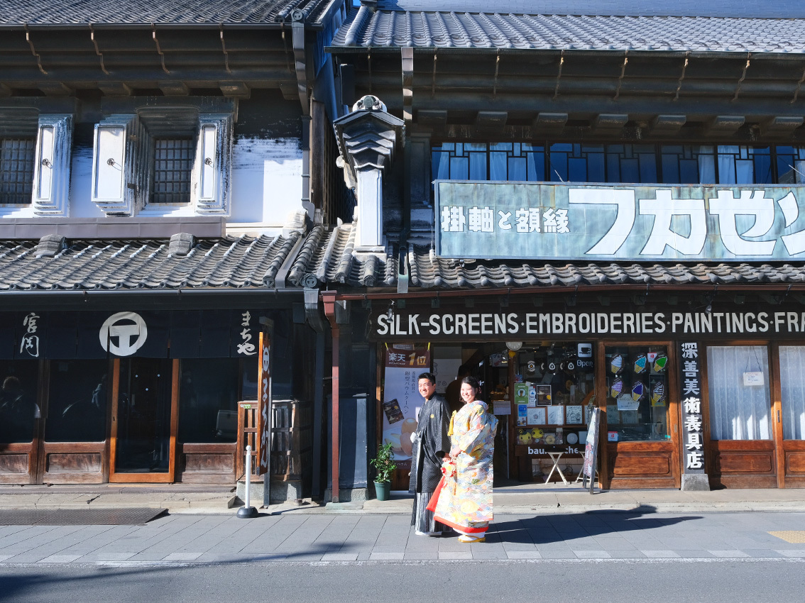 最近では外国の方にも人気の川越です。街を散策する気持ちで、歩きながらの撮影はウェディングフォトを一層楽しめます。<おすすめシーズン:年間通じて>