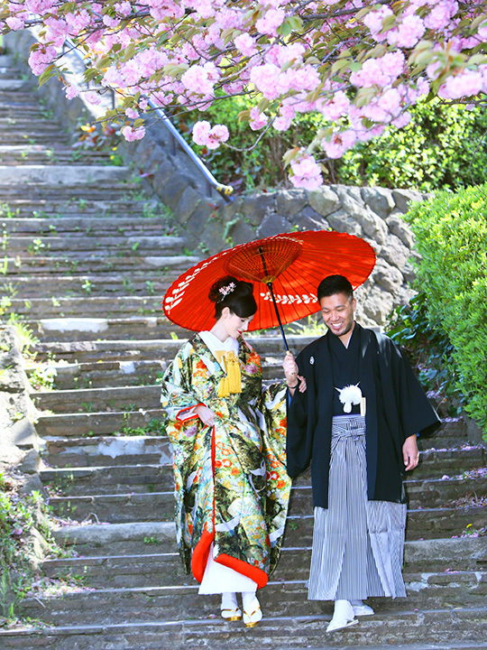 電話やメールでの対応も丁寧で、わがままも聞いていただきました。すみません。。。楽しく撮影できるように、トークで盛り上げていただき、緊張していた新郎も自然な笑顔が出ました。ロケーション撮影は和装で暑かったのですが、扇風機やひんやりジェルなど用意してくださったので助かりました。